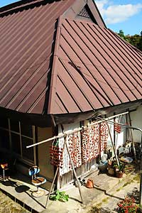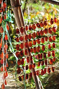 家の前にはため池があり、母が毎晩剥いて干した柿が吊り下げられ