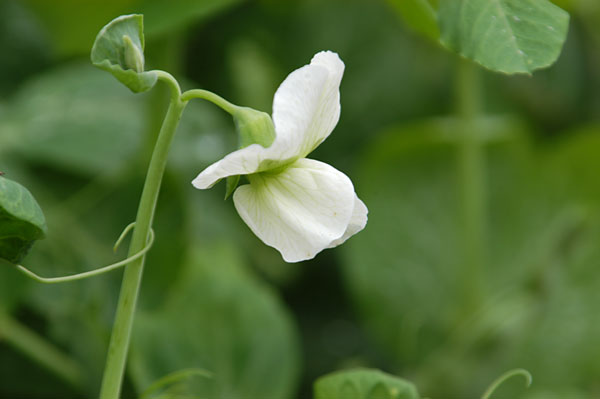 畑を覗いてみると、エンドウの花が咲き始めた。