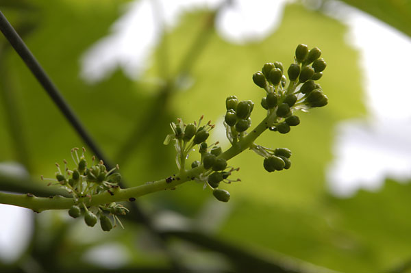 ぶどうの花が咲き始めたので、天候が一段と気になる。