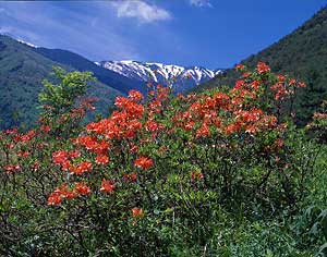 六月中半を過ぎると 北アルプスの蝶岳(2677M)の稜線に、山名の由来とされる蝶の雪型が